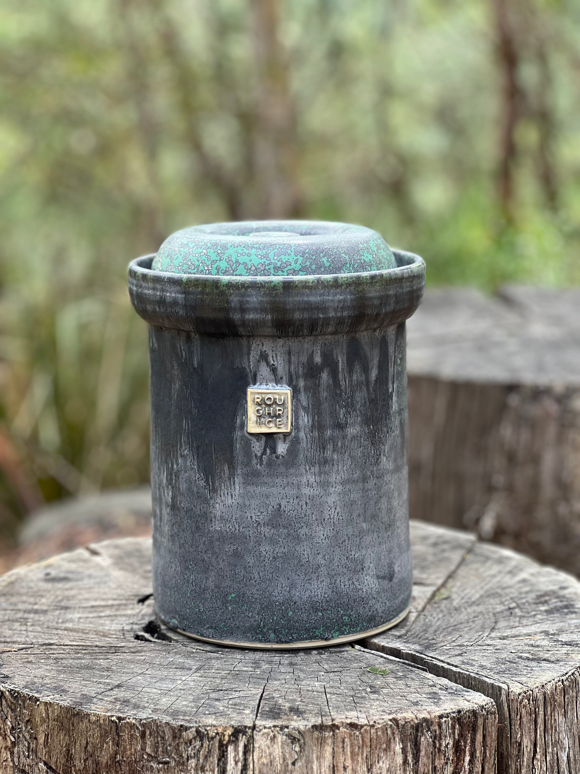 Hand thrown in Lutruwita these beauties are a collaboration with Isaac from Small Fire. These crocks are a perfect home pickling vessel; ideal for kimchi, sauerkraut, pao tsai and so forth.